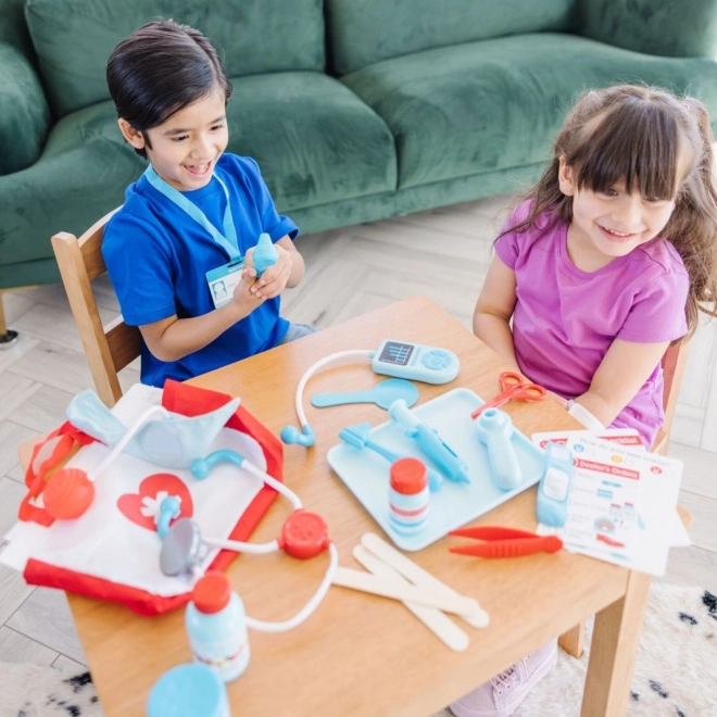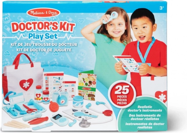 Acest set medical pentru copii Melissa oferă tot ce are nevoie un mic doctor sau o mică doctoriță: stetoscop, termometru, seringă, foarfecă și alte accesorii în culori atrăgătoare. Copiii pot exersa în siguranță scenarii de role-play, pot învăța elementele de bază ale îngrijirii și își pot dezvolta empatia.