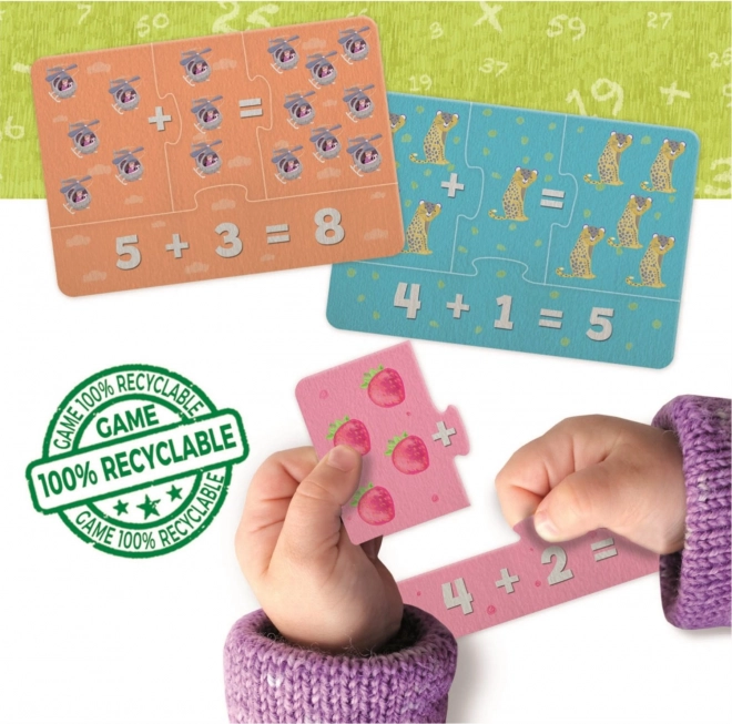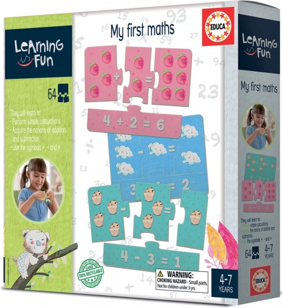 Puzzle-ul și jocul educativ Prima mea matematică din seria EDUCA Learning is Fun este un ajutor excelent pentru preșcolari și copiii din clasele primare. Prin joc, îi ghidează în primele etape ale matematicii – de la recunoașterea numerelor până la sarcini de calcul simple. Copiii asamblează puzzle-uri din patru piese, unde fiecare rezultat corect se potrivește la locul lui, ceea ce sprijină înțelegerea conexiunilor.