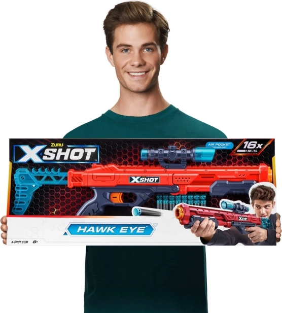 Cauți o jucărie amuzantă, dar precisă pentru tragere? X-Shot Excel Hawk Eye este pentru tine! Cu o lungime de 60 cm, te vei simți ca un adevărat lunetist la fiecare împușcătură.