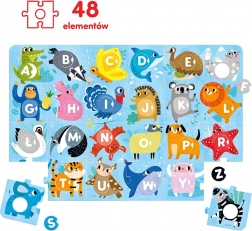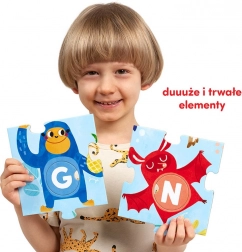 Geanta este uriașă, colorată ca o poveste și frumos ilustrată, ceea ce inspiră la cunoașterea literelor și permite multe activități de dezvoltare diverse. Asamblarea puzzle-ului este doar una dintre ele. Ghidul inclus este plin de idei pentru jocuri educative, adaptate vârstei și abilităților copilului. Puzzle-ul este potrivit atât pentru acasă, cât și pentru mediul grădiniței.