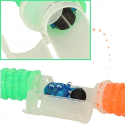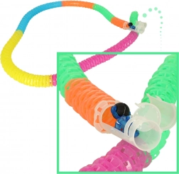 Montajul creativ al pieselor permite construcția pistei în două moduri: liber pentru viraje flexibile sau solid pentru structuri verticale stabile. În plus, datorită luminii încorporate, mașinuța aduce un efect grozav la apus și garantează un spectacol uimitor.