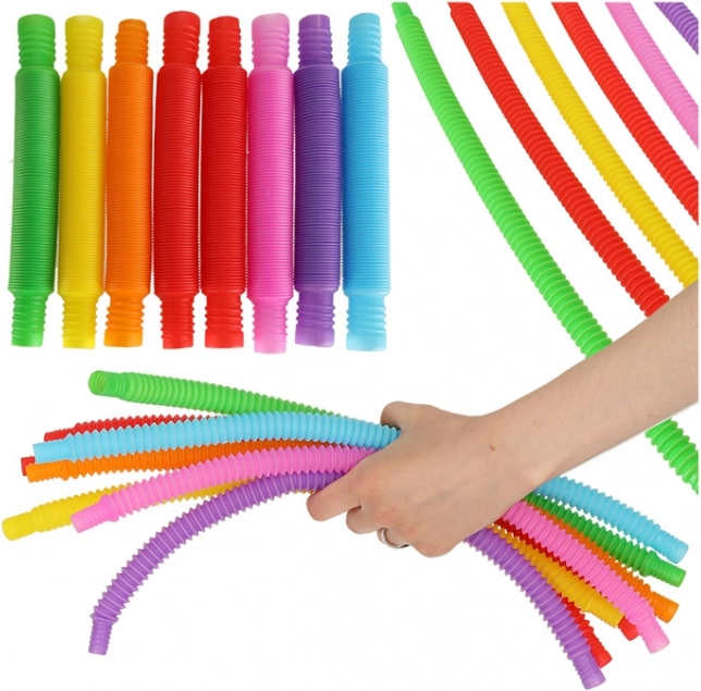Descoperă magia tuburilor senzoriale, pe care copiii le iubesc! Fiecare dintre cele opt tuburi colorate oferă ore întregi de distracție datorită naturii lor flexibile. Ele pot fi extinse, răsucite și conectate în diferite forme, oferindu-le copiilor spațiu pentru creativitate.