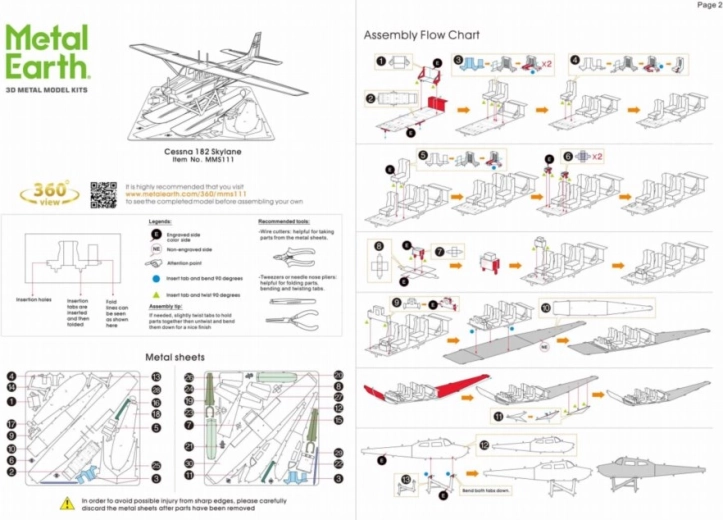Modelul METAL EARTH Cessna 182 Hidroavion reprezintă o combinație de răbdare și îndemânare la asamblare, iar răsplata pentru efortul depus va fi o capodoperă realistă. Din părțile mici pe foițe de oțel (11 x 11 cm) ia naștere, datorită gravurii laser precise, o replică detaliată a faimosului hidroavion.