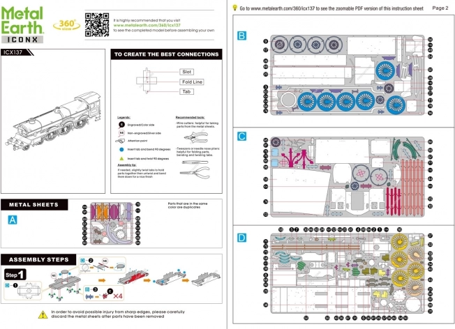 Asamblarea este curată și intuitivă – piesele se scot ușor din foile de oțel și se îmbină cu ajutorul blocajelor, astfel că nu aveți nevoie de lipici. Pentru o muncă mai comodă, recomandăm clești fini și o mică foarfecă de tăiat (nu sunt incluse). În pachet găsiți și o pensetă și un ghid clar, care vă va ghida prin întregul proces.