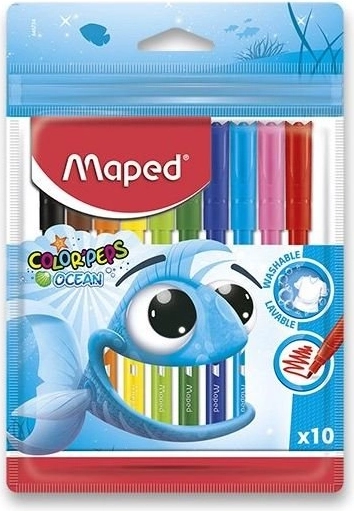 Descoperiți markere școlare și creative de încredere, care îi vor încânta atât pe copii, cât și pe adulți. Maped Color'Peps Ocean oferă culori intense și strălucitoare, se spală ușor de pe piele și sunt lavabile de pe majoritatea textilelor, astfel că nu trebuie să vă temeți de pete nedorite.