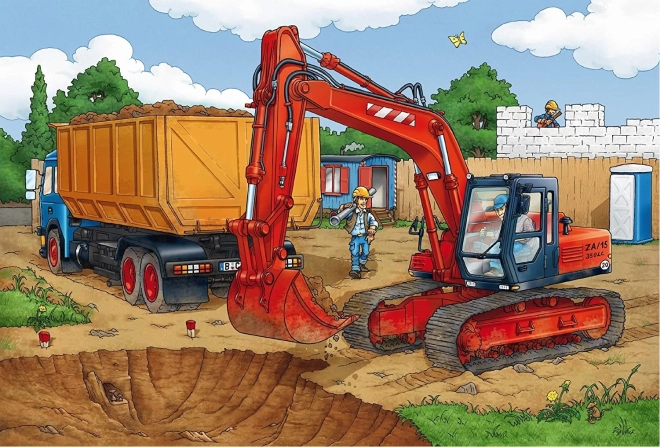 Imersați-vă în fascinantul mediu al șantierului cu Puzzle SCHMIDT Pe șantier. Fiecare puzzle are dimensiunile de 26,3 x 17,8 cm și ilustrează scene dinamice de construcție.