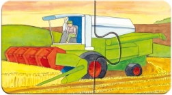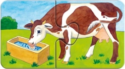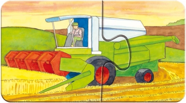 Ilustrațiile cu tematică de fermă – de la puișori drăgălași la tractor și combină – dezvoltă în mod natural vocabularul și imaginația. Suprafața specială cu impregnare de in asigură un aspect mat fără reflexii deranjante. Puzzle-urile sunt fabricate din carton reciclat, fiind o alegere sustenabilă.