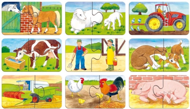 Descoperiți primele puzzle-uri pentru cei mici: puzzle-urile pentru copii RAVENSBURGER cu teme de fermă oferă 9 mini-puzzle-uri separate din câte 2 piese. Carton extra gros, decupaje precise și piese robuste care susțin motricitatea fină, concentrarea și recunoașterea animalelor și utilajelor (tractor, combină). Calitate fără reflexii și prietenoasă cu natura.