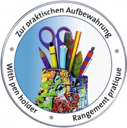 Plasticul de calitate asigură rezistență și durată de viață îndelungată, în timp ce imprimeul modern graffiti oferă modelului un aspect original, care atrage din prima clipă.