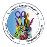 Modelul final funcționează ca suport practic pentru creioane, creioane colorate, foarfece sau markere și, în același timp, ca o decorațiune expresivă pentru birou.