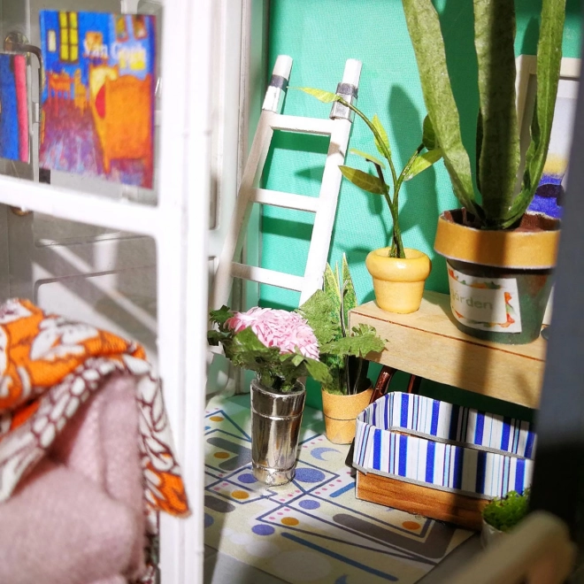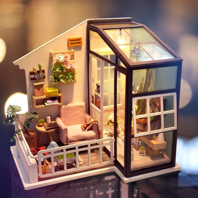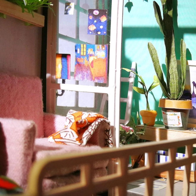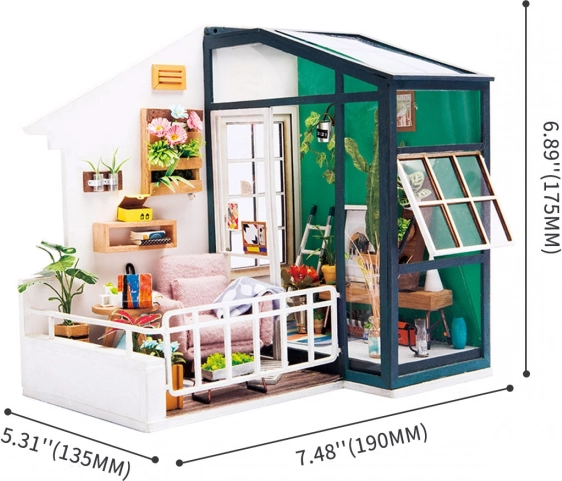 Setul Robotime-Rolife DGM05 este o casă frumoasă cu balcon. Imaginați-vă că stați pe o canapea confortabilă sub soarele cald și citiți o carte cu o ceașcă de cafea. Cât de vie este această scenă!