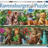 Bucurați-vă de asamblarea puzzle-ului cu motiv de pisici pe rafturi printre flori. Cu cele 500 de piese, acest puzzle este o provocare pentru toți împătimiții de puzzle, care doresc să se relaxeze și să-și petreacă timpul cu un hobby preferat.