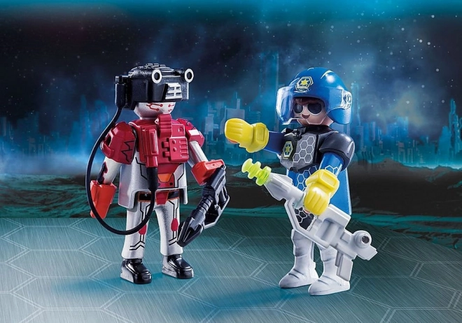 Pornește în adâncurile spațiului și menține ordinea cu curajosul polițist sau încearcă-ți norocul în rolul hoțului isteț. Acest set compact este un excelent complement pentru toate seturile spațiale PLAYMOBIL și oferă distracție instant, fără construcții complicate.