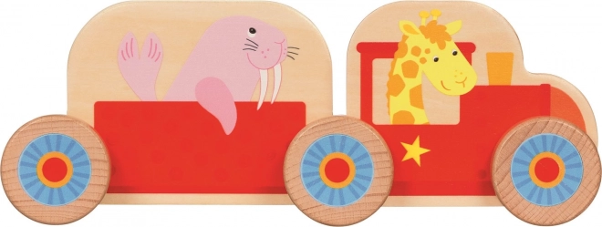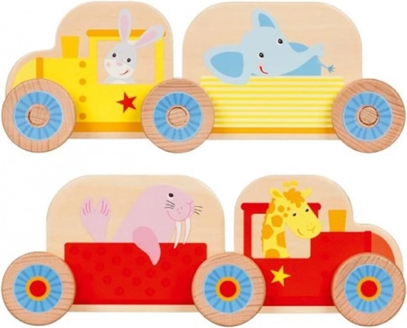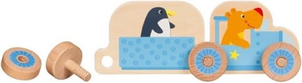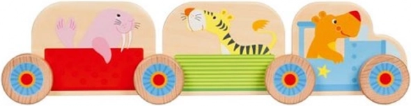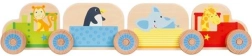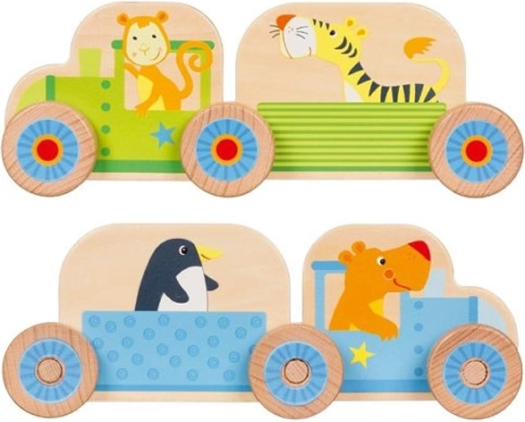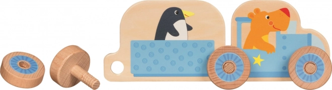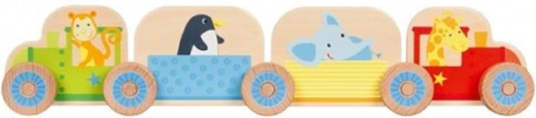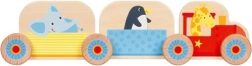 Jucăria de construcție din lemn Micuțul meu tren este modalitatea perfectă de a introduce copilul tău în magie construcțiilor. Constă din 16 piese, inclusiv două locomotive și două vagoane care transportă animale în excursie.