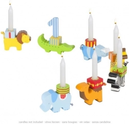 Această decorațiune aniversară atemporală transformă masa într-un decor fermecător. Setul conține 7 animăluțe din lemn pictate în detaliu, în ale căror „daruri” se pot introduce lumânări, precum și un set de cifre din lemn 1–10 pentru marcarea ușoară a vârstei copilului. Întreaga procesiune măsoară aproximativ 58 cm și, datorită execuției de calitate, este stabilă și aspectuoasă.