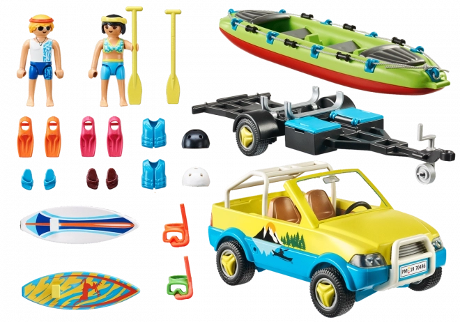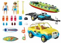 Setul PLAYMOBIL FAMILY FUN mașină de plajă cu remorcă pentru barcă aduce o lume variată de activități estivale – de la valuri pentru surferi până la vâslitul liniștit în caiac. Mașina robustă, cu suporturi pentru plăci și remorcă pentru barcă, oferă numeroase scenarii de joacă și face față cu ușurință fiecărei excursii la apă.