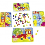 La început, copiii pot învăța să introducă pietricelele colorate în imagini după bunul plac și să își exerseze degețelele și motricitatea fină.