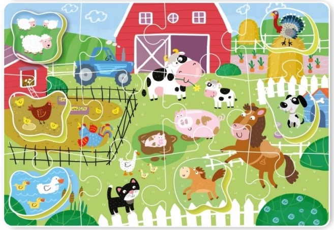 Puzzle Fermă 18 piese sunt jucării educative ideale pentru cei mai mici copii. Sprijină concentrarea, răbdarea și dezvoltă abilități manuale, ceea ce le face o modalitate excelentă de a petrece timpul liber.