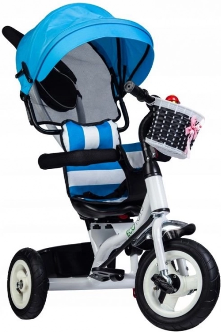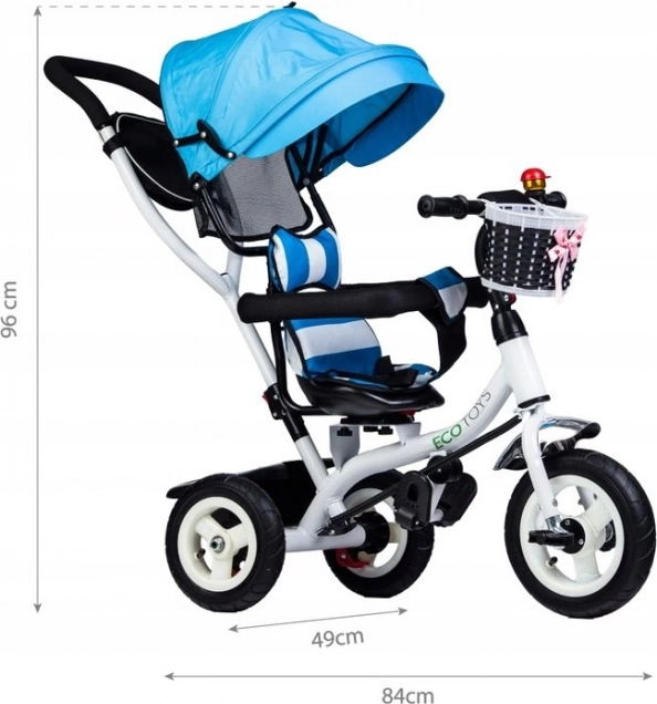 Această tricicletă de la ECOTOYS este concepută pentru a oferi copilului tău siguranță și confort atât în timpul jocului, cât și la plimbare. Spătarul moale, împreună cu centurile de siguranță și barele de protecție, asigură că micuțul rămâne în siguranță la locul lui. Baldachinul rabatabil protejează copiii de intemperii, iar scaunul rotativ facilitează urcarea și coborârea.