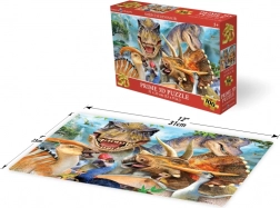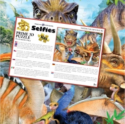 Puzzle 3D distractiv cu motivul selfie-ului cu dinozauri va încânta atât micii, cât și marii fani ai preistoriei. Datorită efectului optic 3D, imaginea pare plastică și spațială, astfel încât unele elemente par mai apropiate, iar altele mai îndepărtate. Puzzle-ul conține 100 de piese, iar după asamblare are dimensiunea de aproximativ 31 × 23 cm.