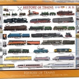 Puzzle cu ilustrarea evoluției trenurilor, precum Class 4000 - Big Boy, Class A4, Class 373, Class 91 și N700. Pentru fiecare locomotivă sunt indicate denumirea, tipul de tracțiune, țara de origine, compania feroviară și anul fabricației. La unele sunt oferite și informații suplimentare, cum ar fi lungimea sau viteza maximă. Pe laterale se află o cronologie a istoriei căilor ferate, cu trei portrete (Richard Trevithick, George Stephenson, Robert Stephenson). Textele sunt în limba engleză.