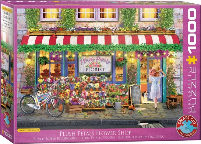 Explorați lumea fermecată a florilor cu puzzle-ul Eurographics Florărie Plush Petals. Acest puzzle, format din 1000 de piese, vă poartă într-un univers al culorilor și al aranjamentelor florale superbe, care decorează fiecare colțișor al imaginii.