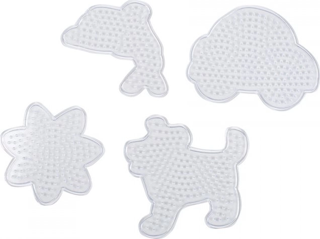 Acest set practic de la Playbox conține patru suporturi transparente pentru aranjamente creative din mărgele termoadezive. Datorită designului transparent, puteți folosi cu ușurință suporturile împreună cu un șablon și crea motive precise. În pachet găsiți formele delfin, mașină, câine și floare, ideale pentru copii și începători. Utilizare ușoară, linii curate și compatibilitate cu mărgelele termoadezive uzuale garantează o activitate creativă distractivă.