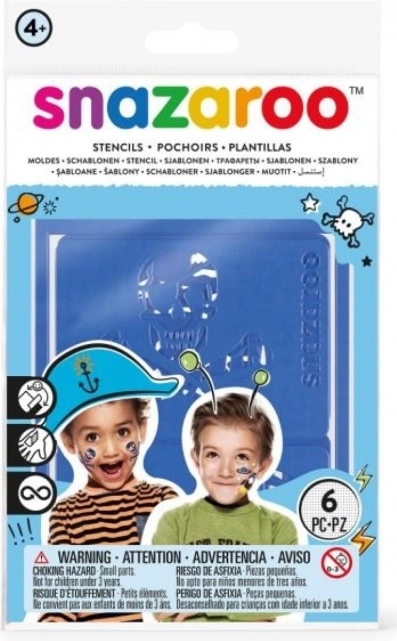 Descoperiți setul de șabloane SNAZAROO cu tematică aventuroasă – pirați, indieni și spațiu – care va duce pictura pe față la nivelul următor. Șabloanele au spate autoadeziv, astfel încât rămân fixate pe loc, iar materialul lor flexibil se adaptează curbelor feței și mâinilor.