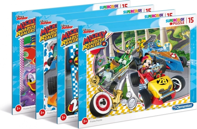 Puzzle cu ramă distractiv pentru cei mici, cu motiv din serialul MICKEY ŞI PILOŢII DE CURSE. Conţine 15 piese rezistente, care se asamblează direct pe suportul cu ramă. Colecţia SuperColor oferă culori vii şi strălucitoare şi susţine îndemânarea manuală şi capacităţile de observare ale copiilor.