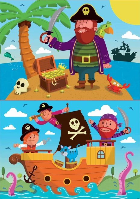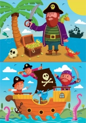 Puzzle pentru copii de la compania spaniolă Educa, care atrag cu motivul și designul lor pirateresc.