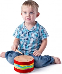 Cântatul la tobă susține dezvoltarea naturală a simțului ritmic, a motricității fine și a concentrării. Pachetul include o baghetă din lemn, cu care copiii pot exersa în siguranță primele ritmuri și cântecele.