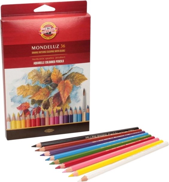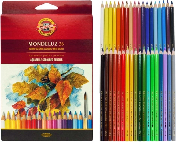 Setul de creioane acuarelă KOH-I-NOOR MONDELUZ, 36 de bucăți, este ideal pentru desen detaliat și pictură cu apă. Pigmenții se remarcă prin excelentă rezistență la lumină și puritatea culorilor, astfel încât lucrările tale rămân luminoase și expresive mult timp. La contactul cu pensula și apa, trăsătura se dispersă frumos și permite obținerea efectelor specifice acuarelei.