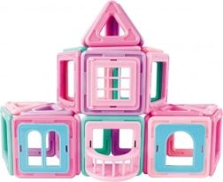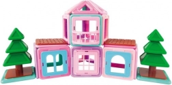 Magformers Mini House este un set frumos conceput și asamblat fantastic, care conține 42 de piese. Este o construcție excelentă pentru orice mică arhitectă și este echipat cu accesorii speciale clip-in destinate clădirilor – precum balcon, ferestre și tot ce este necesar pentru a construi casa visurilor în culori pastel roz și turcoaz. Poți construi orice, de la căsuțe, cabane sau case de vacanță, complet chiar și cu copaci. Setul include 18 pătrate, 12 triunghiuri, 1 fereastră cu un singur canat, 1 fereastră cu două canaturi, 1 fereastră împărțită, 1 balcon, 6 inserții „cărămidă” și 2 copaci. Potrivit pentru copii de la 3 ani. Număr de piese: 42. Setul de construcție magnetică creativă Magformers permite asamblarea unui număr mare de obiecte tridimensionale folosind poligoane din plastic bidimensionale. Magformers dezvoltă motricitatea fină, stimulează creativitatea, îi învață pe copii culorile și formele geometrice de bază. Dimensiunile pieselor și formele alese adecvat asigură siguranța maximă posibilă a jucăriei. Materialul din care este fabricat setul îndeplinește cele mai stricte criterii igienice și sanitare. Piesele sunt suficient de mari, nu pot fi înghițite și sunt practic indestructibile. MAGFORMERS poate fi combinat foarte bine și cu cunoscutul set magnetic Geomag.