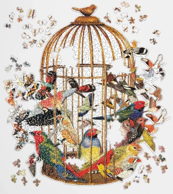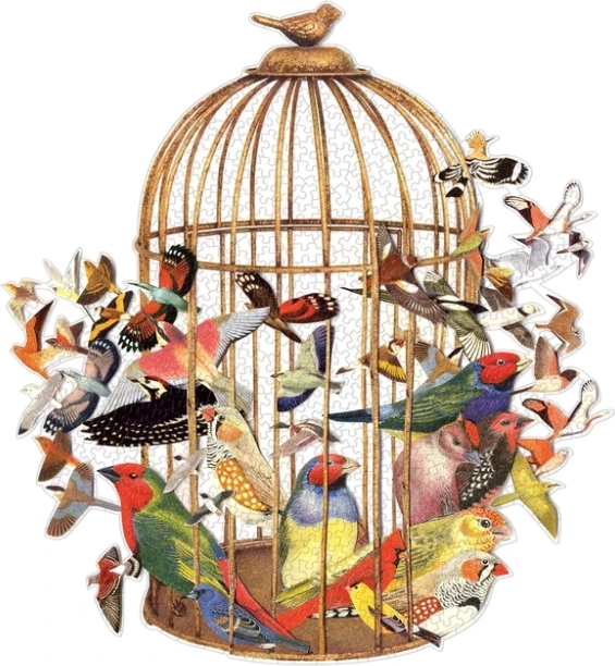 - Puzzle cu formă neregulată – contur unic de colivie pentru păsări după finalizare.