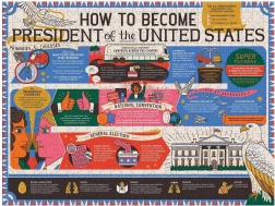Descoperă un puzzle distractiv și în același timp educativ: puzzle dublu față cu tema parcursului către funcția de președinte al SUA. Bucură-te de 500 de piese, două fețe diferite (lucioasă și mată) pentru asamblare mai ușoară și un motiv clar, cu pașii de la alegerile primare până la scrutinul final. Este inclus și un poster ilustrativ cu ambele motive.