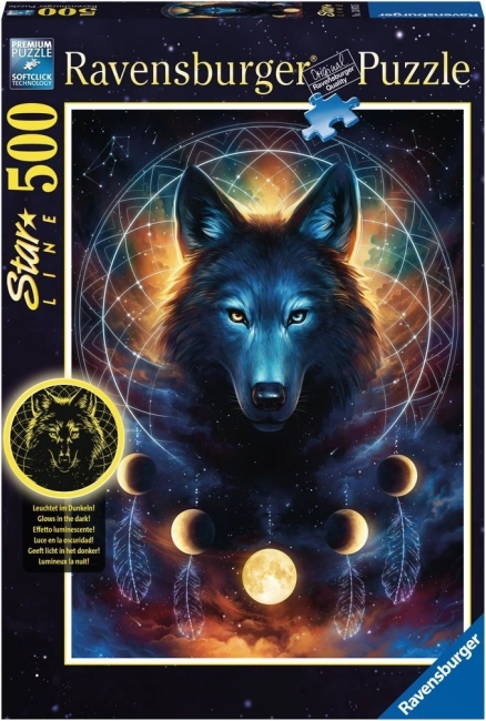 Intrați într-un peisaj nocturn misterios, cu motivul unui lup sub luni strălucitoare. După stingerea luminilor, imaginea strălucește în întuneric și oferă puzzle-ului o atmosferă unică, pe placul atât al colecționarilor pasionați, cât și al amatorilor ocazionali.