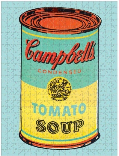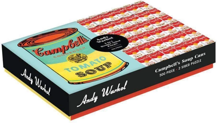 Puzzle-ul dublu față Andy Warhol Soup Can de la Galison include două versiuni ale operei pop-art iconice a lui Warhol. Piesele au pe o parte un finisaj mat și pe cealaltă un finisaj lucios pentru o sortare ușoară.