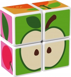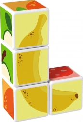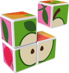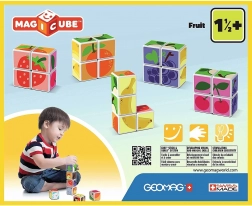 Cuburi din plastic cu motiv de fructe. Cuburile sunt magnetice, astfel încât copiii pot construi obiecte tridimensionale. Copiii pot construi un măr, o căpșună, struguri, cireșe, o banană, o piersică sau chiar un coș ori un gard pentru animăluțe. Extindeți posibilitățile de joc achiziționând alte seturi GEOMAG Magicube. Cuburile pentru copii Magicube susțin coordonarea și motricitatea, dezvoltă imaginația și gândirea logică și îi motivează să spună povești. Pachetul conține 4 cuburi magnetice și 6 carduri cu propuneri de asamblare a animalelor. Fabricat în Elveția. video ilustrativ cuburi magnetice Geomag Magicube