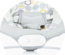 Butoanele de comandă permit setarea melodiilor și vibrațiilor. Produsul include și sigla Chipolino pe centura de siguranță.