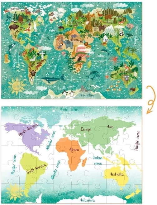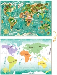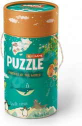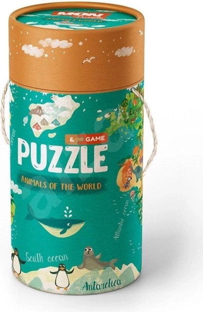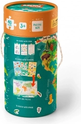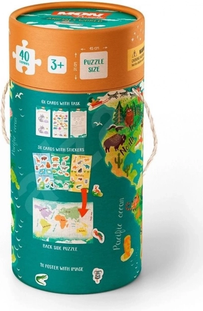 Descoperiți un set jucăuș pentru copiii de la 3 ani, care îmbină puzzle-ul față-verso cu 40 de piese, cărți cu sarcini, poster și autocolante. Tubul cadou ascunde ore de distracție și, în același timp, dezvoltă motricitatea fină, gândirea logică și cunoașterea animalelor din întreaga lume.