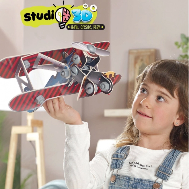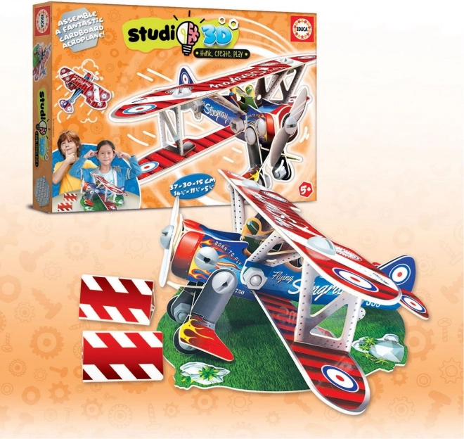 Educa model 3D biplan este un set de construcție distractiv și educativ, care îi familiarizează pe copii cu munca proiectanților și mecanicilor. Toate piesele sunt realizate din carton rezistent; componentele se desprind cu ușurință și se conectează ulterior cu șuruburi și piulițe din plastic. Montajul este simplu, sigur și se realizează fără foarfecă și lipici.