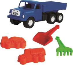 Camionul are o dimensiune practică, încape în geantă sau sub cărucior și i se poate atașa o sfoară pentru a fi tras cu ușurință. Este un produs cehesc al mărcii Dino Toys, care pune accent pe calitatea execuției și pe rezistența necesară pentru joaca zilnică în nisipar.