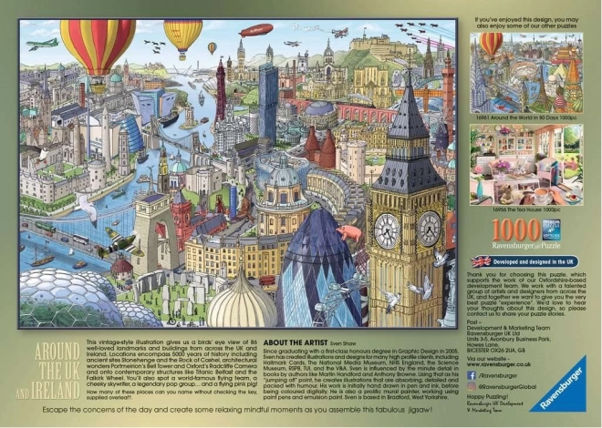 Descoperă frumusețile Insulelor Britanice cu puzzle-ul de calitate RAVENSBURGER din 1000 de piese. Bucură-te de tăiere precisă, îmbinare perfectă și culori superbe pentru asamblare relaxantă și antrenarea concentrării.