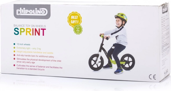 Bicicleta de echilibru Chipolino Sprint green este alegerea ideală pentru primii pași în lumea ciclismului. Construcția minimalistă, fără pedale, susține dezvoltarea naturală a echilibrului și ușurează trecerea ulterioară la bicicleta clasică. Datorită greutății reduse de 3,1 kg, se manevrează și se transportă cu ușurință.