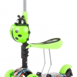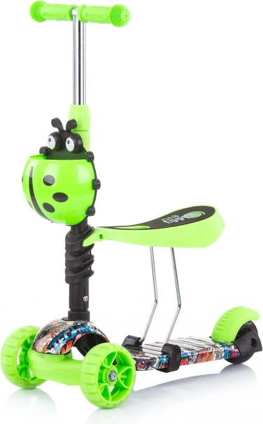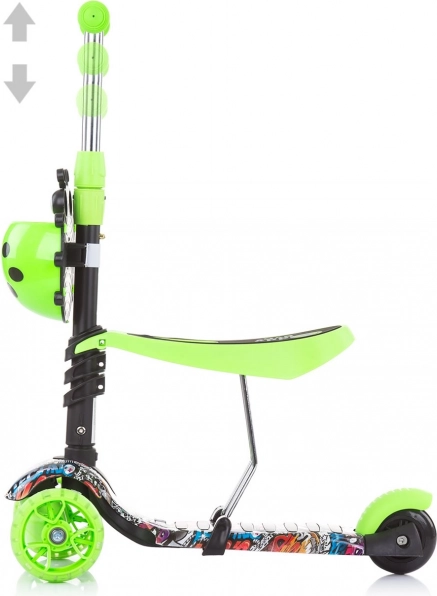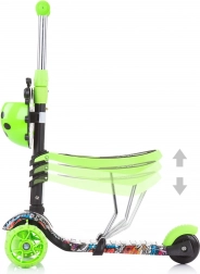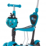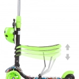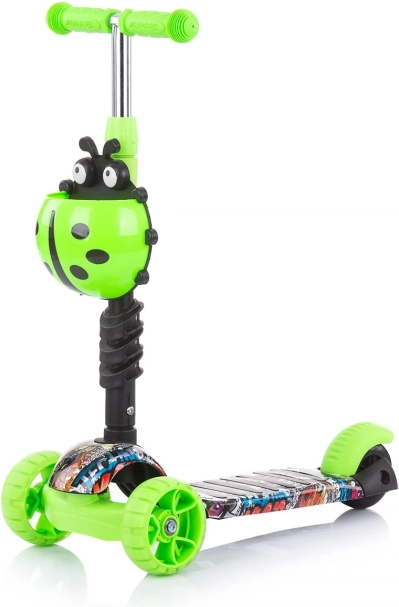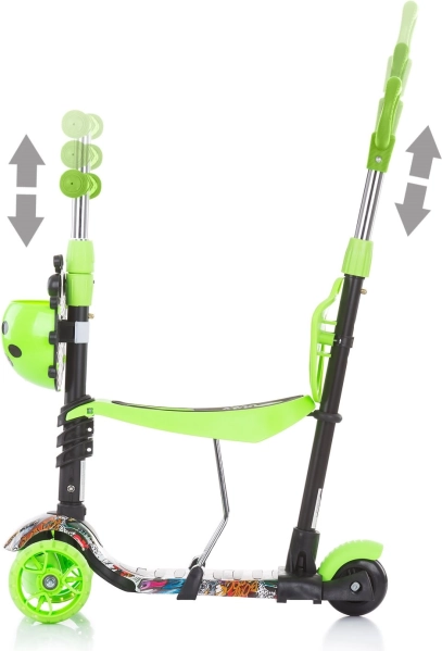 Kiddy Evo 3‑în‑1 este o trotinetă versatilă pentru copii, care se adaptează abilităților actuale ale copilului. Datorită tijei de ghidare, părintele poate controla confortabil deplasarea; ulterior, copilul folosește modul stabil de antemergător, iar în final mersul independent pe trotinetă. Construcția cu trei roți, platforma lată antiderapantă și frâna spate la picior oferă siguranță la fiecare ieșire.