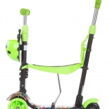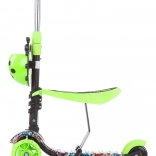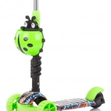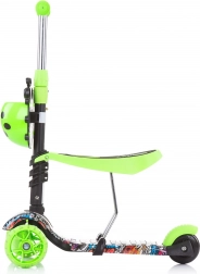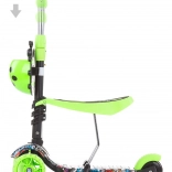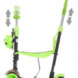 Roțile frontale cu LED-uri colorate sporesc vizibilitatea și distracția, stabilitatea pe trei roți și frâna spate acționată la picior asigură opriri sigure.