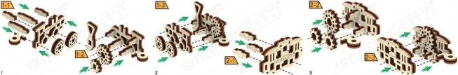 Aceste puzzle-uri din lemn sunt modele mecanice funcționale, care se asamblează fără lipici sau unelte. Fabricate din materiale lemnoase ecologice, mai exact din placaj de mesteacăn de înaltă calitate, garantează o prelucrare detaliată și multă distracție.