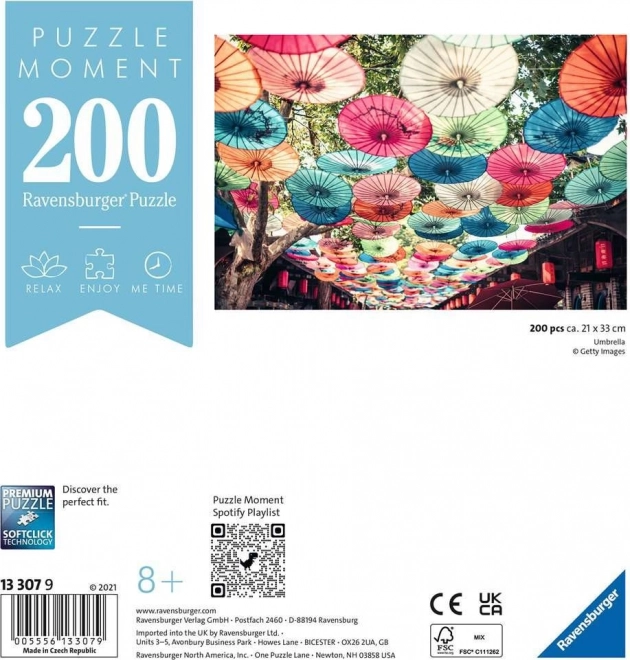 Cauți un moment scurt, dar intens de liniște? Puzzle-ul RAVENSBURGER Moment cu motivul umbrelor colorate oferă activitatea ideală de evadare pentru fiecare zi. Datorită numărului echilibrat de 200 de piese și execuției de calitate, asamblarea este cursivă, distractivă și te eliberează excelent de stresul cotidian.