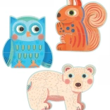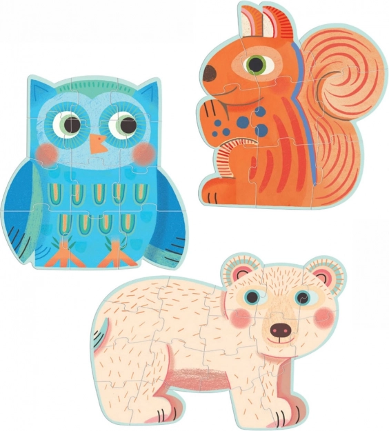 Descoperă setul jucăuș de trei puzzle-uri contur DJECO cu teme din pădure – veveriță, bufniță și urs. Fiecare puzzle are un număr diferit de piese (9, 12, 16), astfel încât copiii își antrenează treptat abilitățile. Susține motricitatea fină, gândirea logică, coordonarea mână–ochi și răbdarea. Ideal pentru copii de la 2 ani.