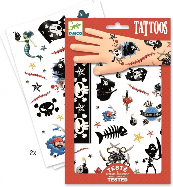 Porniți într-o aventură pe marea largă cu tatuajele temporare DJECO cu tematică de pirați. Ilustrațiile delicate, culorile intense și motivele amuzante îi vor bucura pe copii și părinți – fie că e vorba de o petrecere aniversară, de carnaval sau de o recompensă pentru îndemânare.